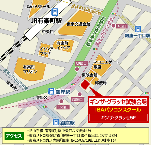 東京メトロ「銀座」駅C8出口より徒歩1分 JR/各線「有楽町」駅銀座口/中央口より徒歩4分